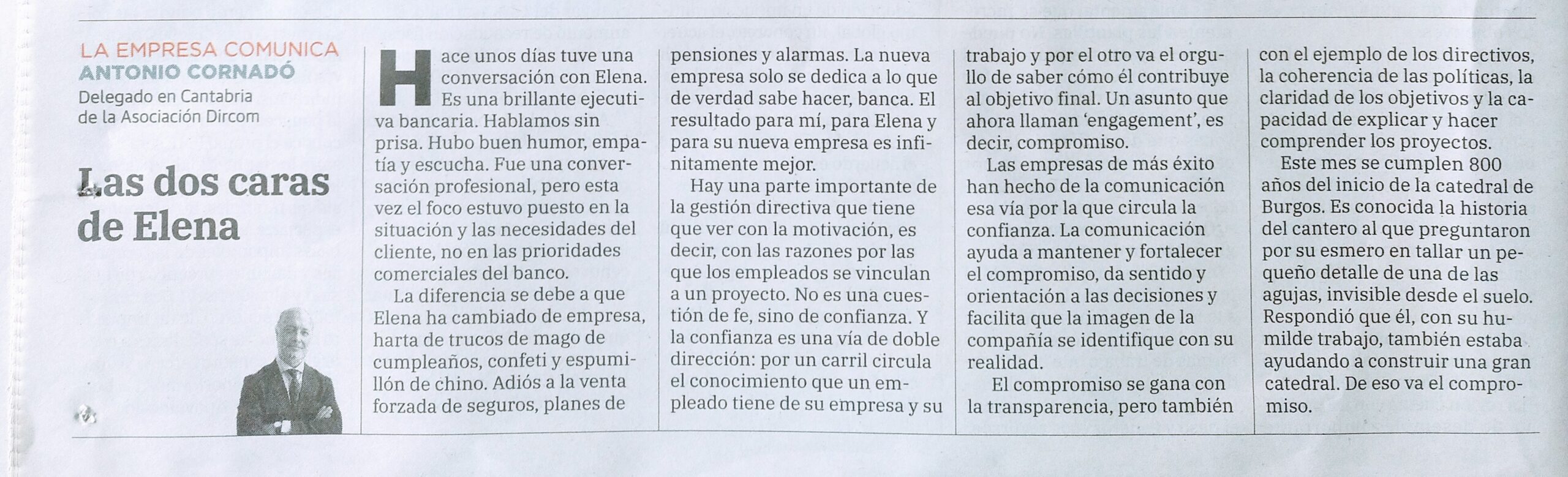 Este mes se cumplen 800 años del inicio de la catedral de Burgos. Es conocida la historia del cantero al que preguntaron por su esmero en tallar un pequeño detalle de una de las agujas, invisible desde el suelo. Respondió que él, con su humilde trabajo, también estaba ayudando a construir una gran catedral. De eso va el compromiso.